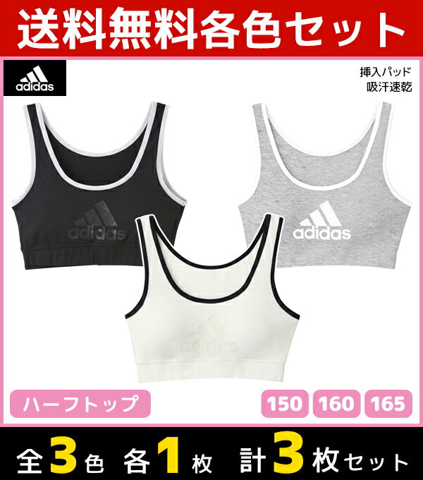 3色1枚ずつ 送料無料3枚セット ジュニアレディース adidas アディダス ハーフトップ パッド入り 150cm 160cm 165cm グンゼ GUNZE スポーツブラジャー 子供下着 | ブラジャー スポーツ スポーツブラ スポブラ ジュニア キッズ ガールズインナー スクール インナーウェア