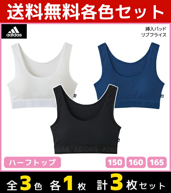 3色1枚ずつ 送料無料3枚セット ジュニアレディース adidas アディダス ハーフトップ パッド入り グンゼ GUNZE スポーツブラジャー 子供下着 | ブラジャー スポーツブラ スポブラ ジュニア キッズ アデイダス 女子 パッド入りハーフトップ ブラ 子供用下着 ジュニアブラ
